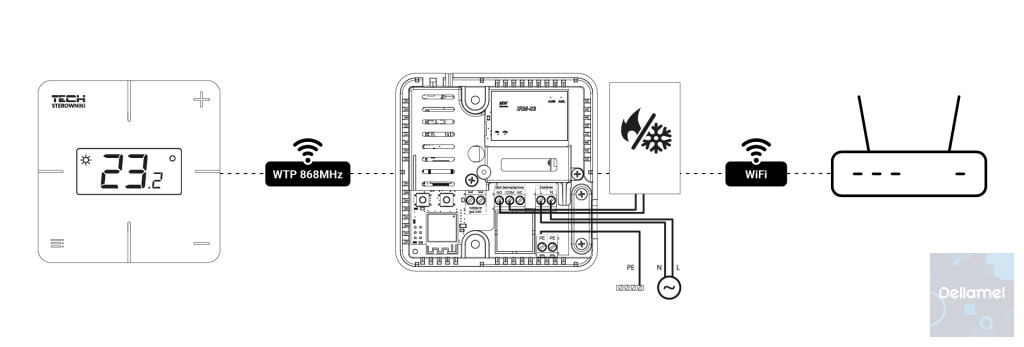 Tech T-2x WiFi Termosztát – Hűtésre - fűtésre- Páratartalom érzékelővel- Padló/mennyezet mag hőmérséklet érzékelő beköthető- Hőszivattyú hűtés funkció észlelés- Magyarnyelvű App- IOS / Android APP